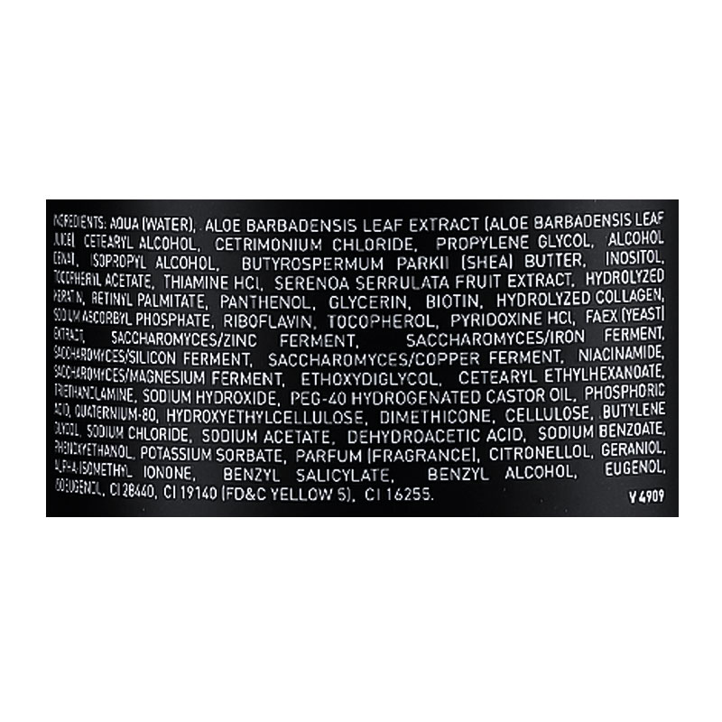 В состав средства входят масло ши, гидролизованный коллаген, кератин и алоэ вера, которые глубоко увлажняют, питают и укрепляют волосы по всей длине. Бальзам уплотняет ослабленные и тонкие волосы, не создавая эффекта отягощения. Продукт легко смывается, оставляя волосы мягкими, блестящими и послушными.