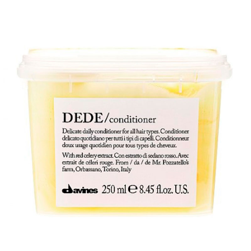 Dede Delicate Air Conditioning від Davines (країна-виробник – Італія) – кондиціонер легкої текстури на основі натуральних екстрактів, олій та мінеральних солей для зволоження, пом'якшення та тонізації локонів. Продукт підійде для волосся будь-якого типу, особливо для тонкого.