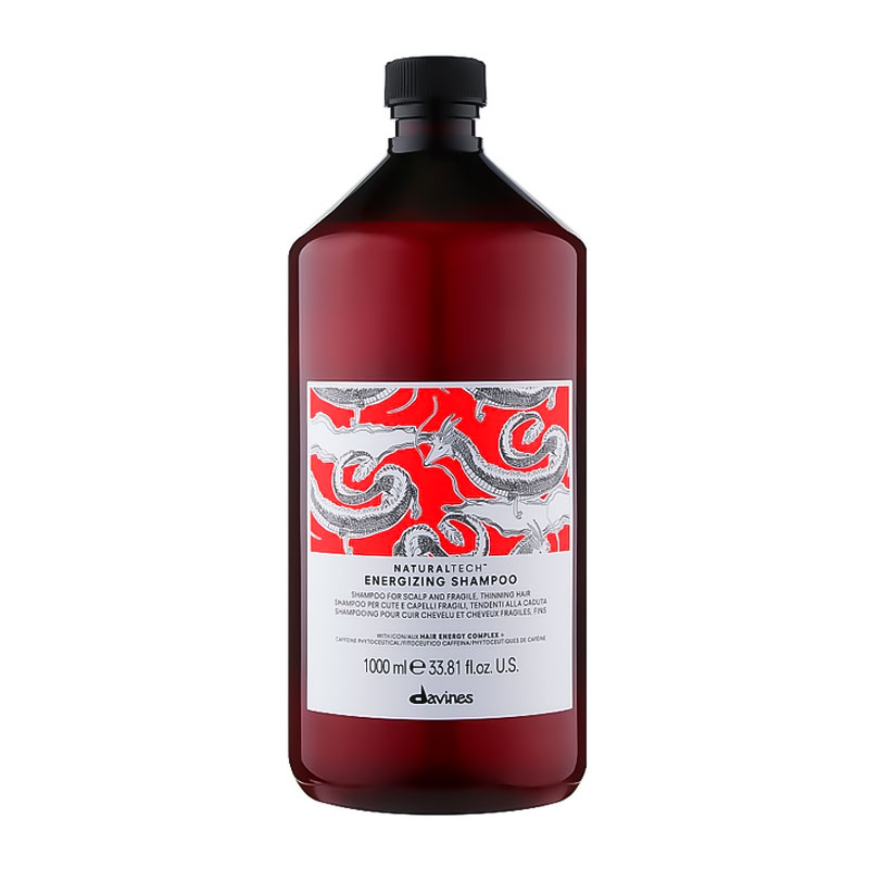 Шампунь Davines Natural Tech Energizing Shampoo (країна-виробник – Італія) розроблений для ефективного очищення та догляду за локонами, схильними до випадання. Формула засобу збагачена кофеїном та екстрактом зеленого чаю, які стимулюють процес метаболізму, покращують мікроциркуляцію шкіри голови та перешкоджають випадінню волосся.
