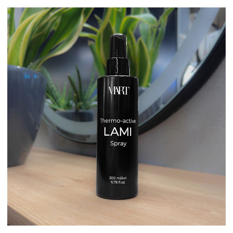 Viart Thermo-Active Lami Spray — ламельний термоактивний спрей, що створює захисну плівку на поверхні волосся від високих температур (до 230 °C); підходить для всіх типів, включно з пошкодженими та сухими, посилює відновлення, блиск і фіксацію, запобігає ламкості та шкідливості від стайлінгових інструментів, може використовуватися самостійно або після ламелярної води.