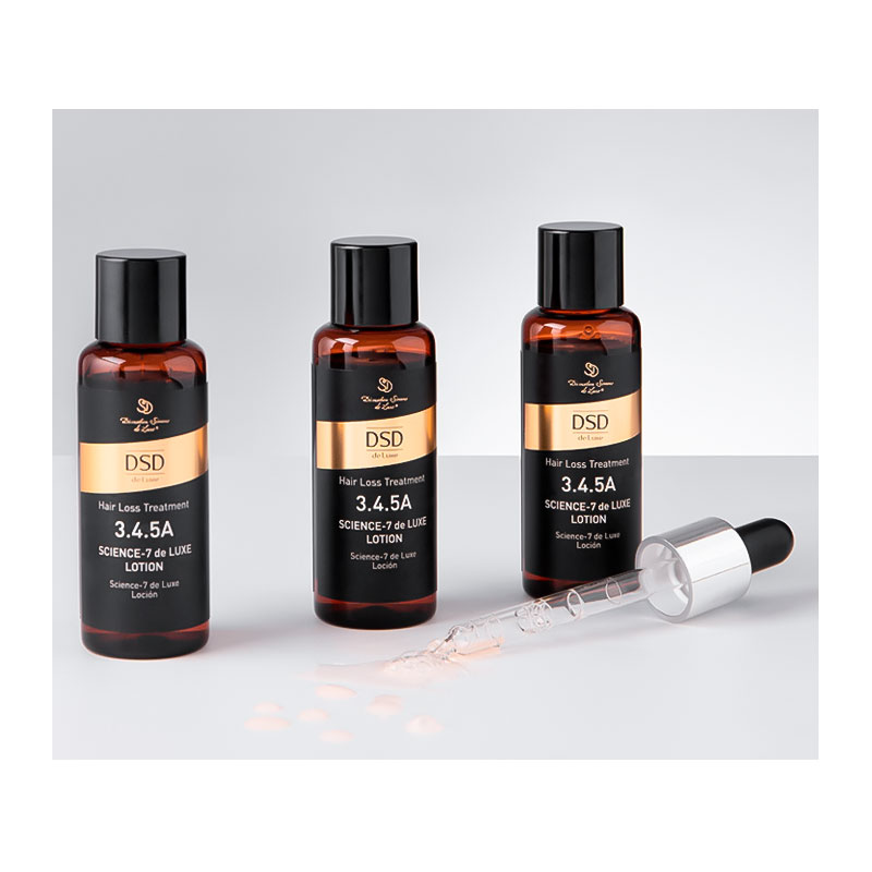 Лосьон для борьбы с выпадением волос DSD 3.4.5A Science-7 DeLuxe Lotion — высокоэффективное средство, предназначенное для интенсивной терапии алопеции и укрепления волос на клеточном уровне. Основа формулы – мощный стимулятор роста волос CEGABA, который активизирует фолликулы, улучшает микроциркуляцию и способствует насыщению клеток кислородом.