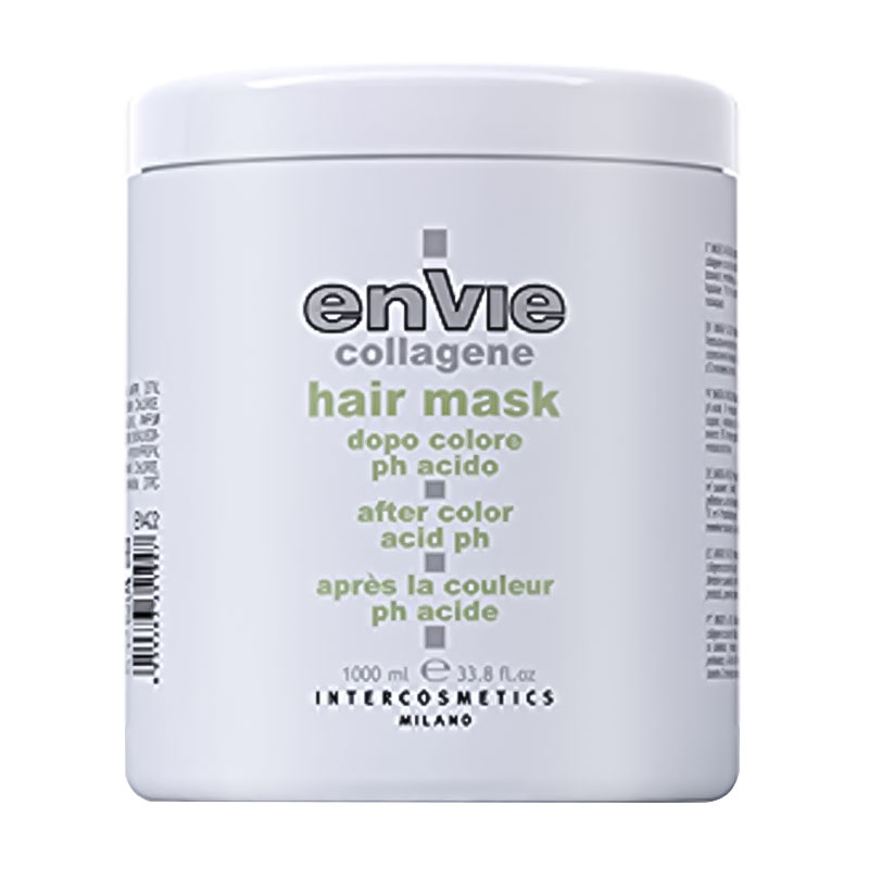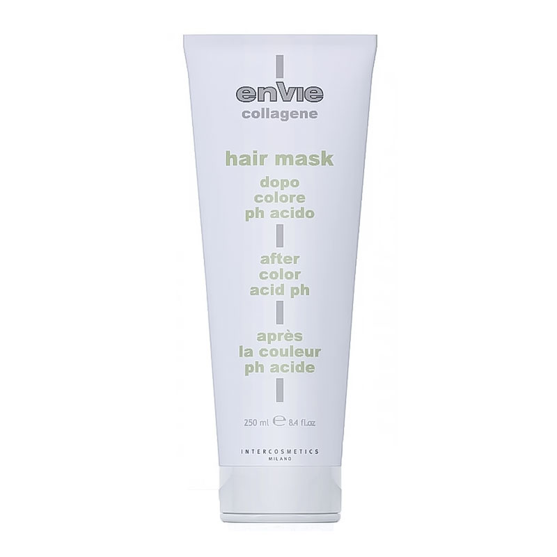 Маска Collagene After Color Mask от Envie (страна-производитель – Италия) разработана для локонов после процедуры окрашивания, глубоко восстанавливает поврежденную химическим воздействием структуру волос, слаживает чешуйки, придает мягкость и блеск сухим волосам. Кислый рН продукта нейтрализует остаточные щелочные процессы и способствует сохранению цвета. Коллаген в составе маски повышает упругость и прочность локонов, делает их увлажненными и шелковистыми.