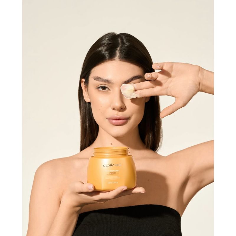 Маска Olorchee Hair Treatment Hydro Spa розроблена для інтенсивного зволоження та відновлення нормального, фарбованого та пошкодженого волосся. Формула збагачена гідролізованими білками та пептидами, які сприяють покращенню структури волосся, повертають йому м'якість і блиск. Засіб підходить для регулярного застосування й ефективно бореться із сухістю й ламкістю волосся.