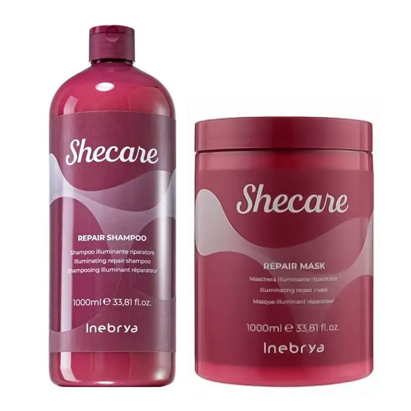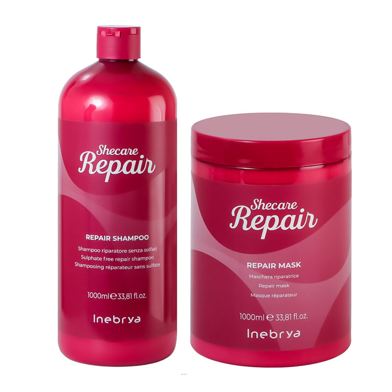 Набір Inebrya Shecare Repair відновлюючі шампунь і маска для пошкодженого волосся, 2х1000 мл