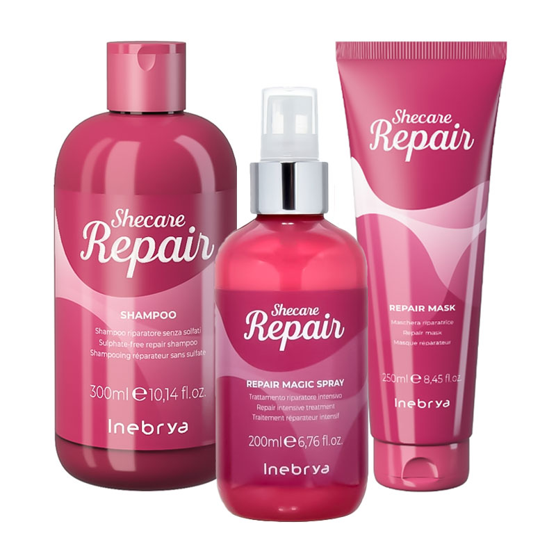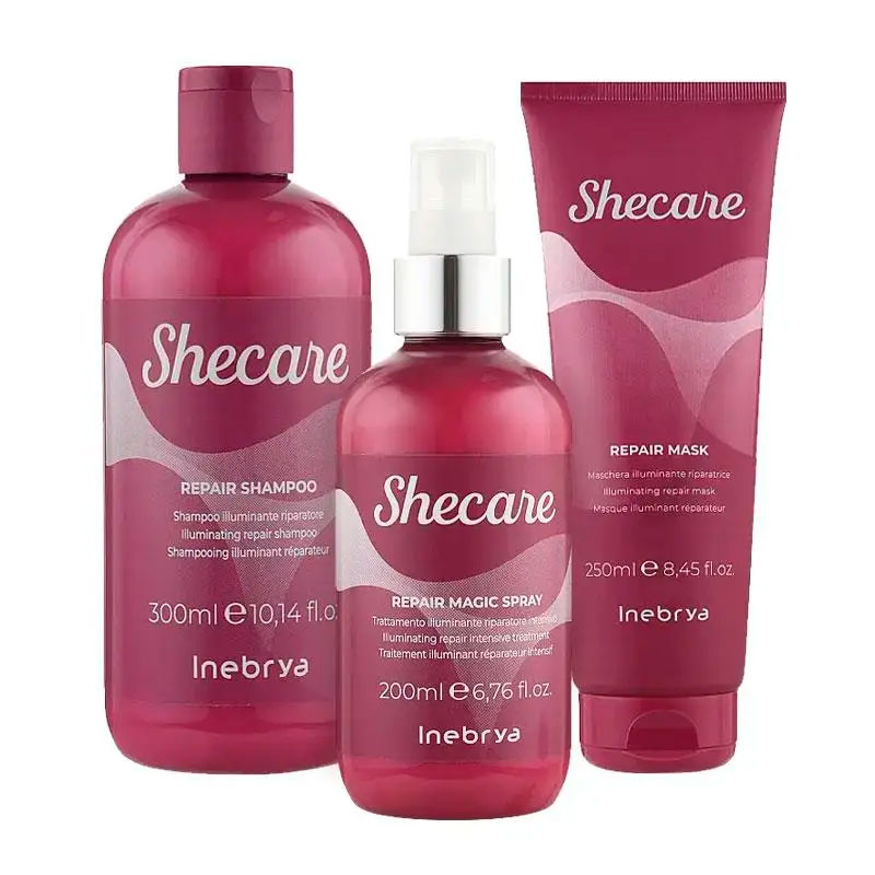 Набор Inebrya Shecare Repair восстанавливающий для поврежденных волос (шампунь+спрей+маска) 300+200+250 мл