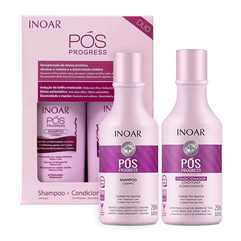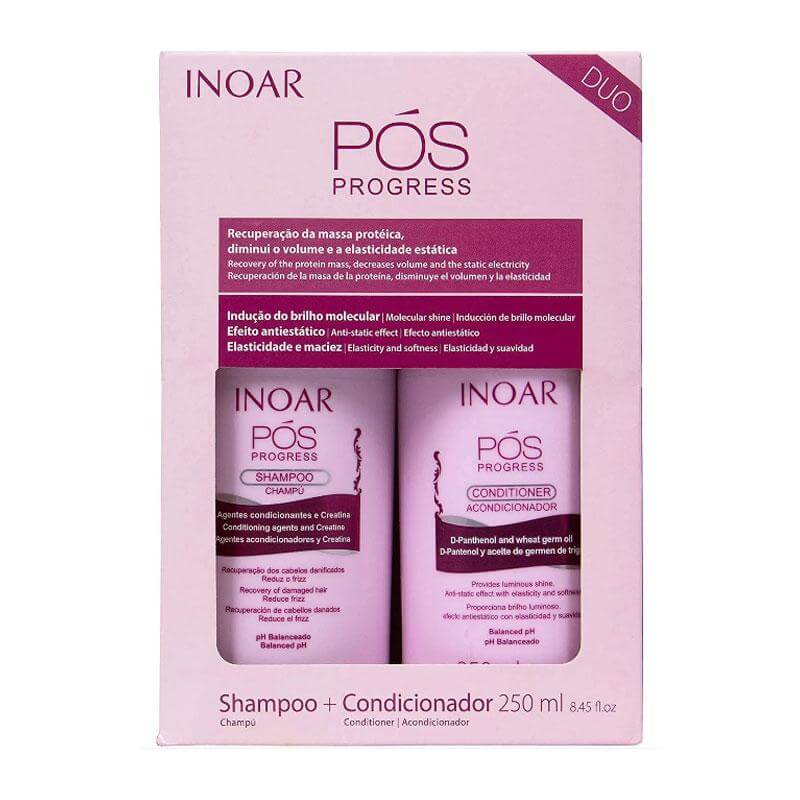 Inoar POS Progress — бессульфатные средства, разработанные бразильским производителем косметики специально для поддержания и закрепления эффекта идеально прямых локонов после кератинового выпрямления волос. В результате применения этих средств непослушные волосы разглаживаются и приобретают естественное сияние.