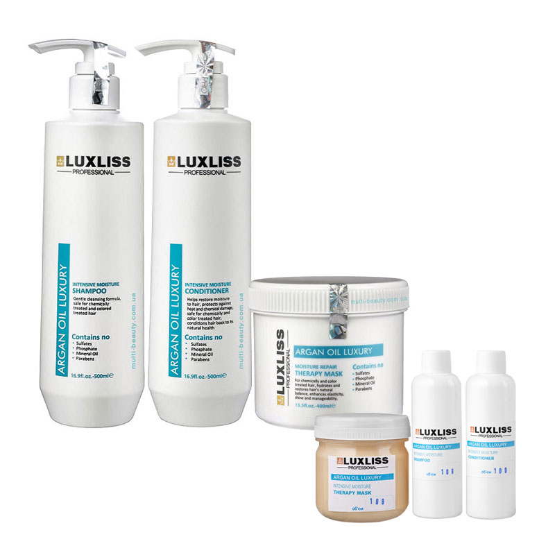Набор Luxliss Argan Oil Luxury Intensive Moisture Original увлажняющие аргановые шампунь, кондиционер и маска 3x100 г (разлив)
