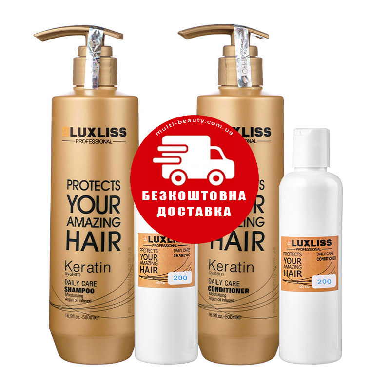 Набор Luxliss Keratin Smoothing Daily Care кератиновый шампунь и кондиционер для ежедневного использования 2x200 г (разлив)