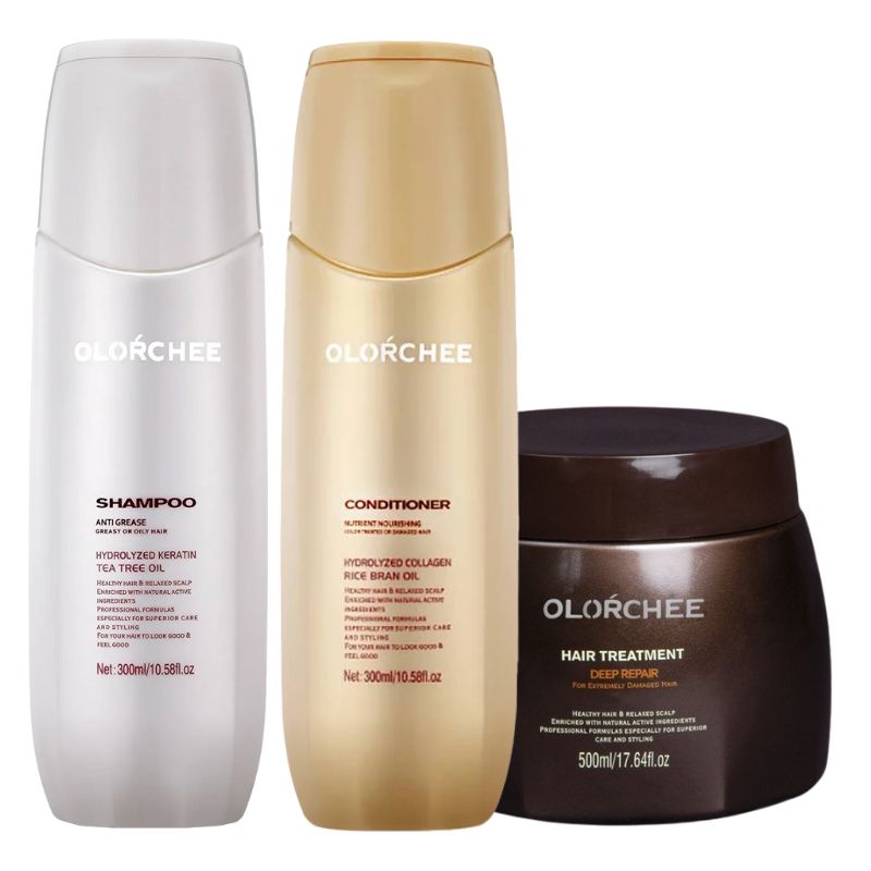 Набор Olorchee Anti Grease TRIO-1 шампунь, кондиционер и маска предназначен для ухода за жирными волосами и кожей головы, склонной к избыточному салоотделению и частым загрязнениям. Шампунь Olorchee Anti Grease Shampoo с маслом чайного дерева и гидролизованным кератином глубоко очищает, уменьшает жирность и освежает кожу головы, а кондиционер Olorchee Nutrient Nourishing Conditioner восстанавливает поврежденные участки волос, делает полотно более гладким и эластичным. Маска Olorchee Hair Treatment Deep Repair улучшает структуру волос, возвращают им мягкость и блеск. Подходит для регулярного использования при жирной или комбинированной коже головы и ослабленных по длине волосах.