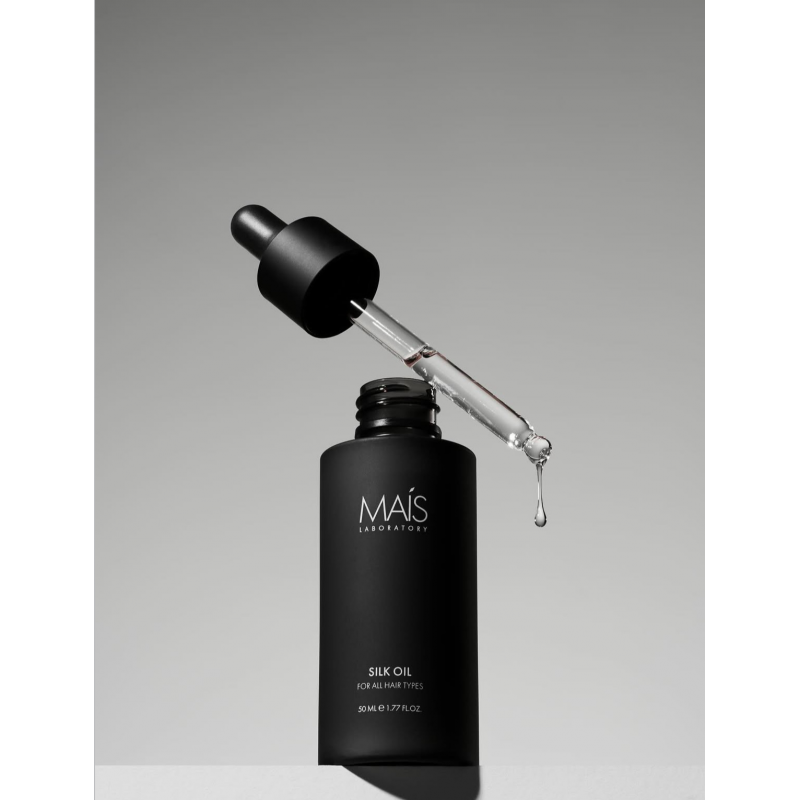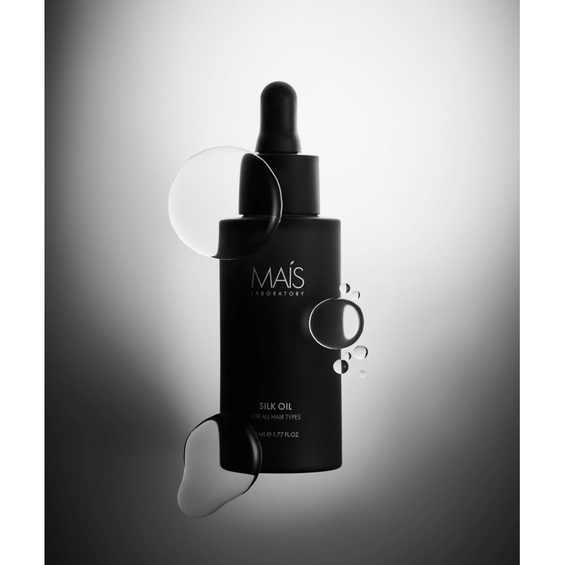 Mais Silk Oil — легка шовкова олія для щоденного догляду за сухим, тьмяним та пошкодженим волоссям; миттєво надає гладкість і блиск, проникаючи в структуру без обтяження, захищає від термічного впливу та зовнішніх чинників, підходить для всіх типів, включно з пофарбовані та тонкі, для відновлення шовковистості та запобігання пушенню.