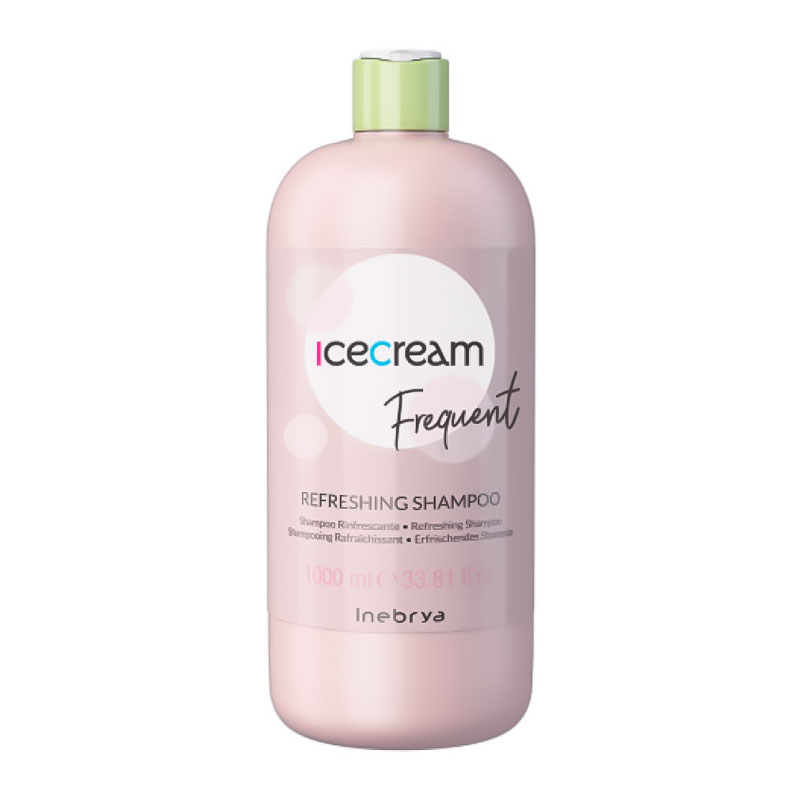 Inebrya Frequent Ice Cream Refreshing Shampoo – освіжаючий шампунь для локонів, схильних до швидкого забруднення та жирності (країна-виробник – Італія). M'ятa у формулі засобу надає заспокійливу дію, тонізує локони, дарує їм шовковистість та блиск.