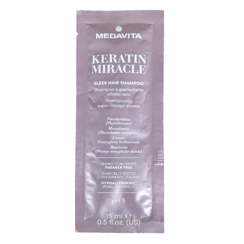 Разглаживающий шампунь Medavita Keratin Miracle Sleek Shampoo с эффектом шелка для пушистых и непослушных волос, пробник саше 15 мл