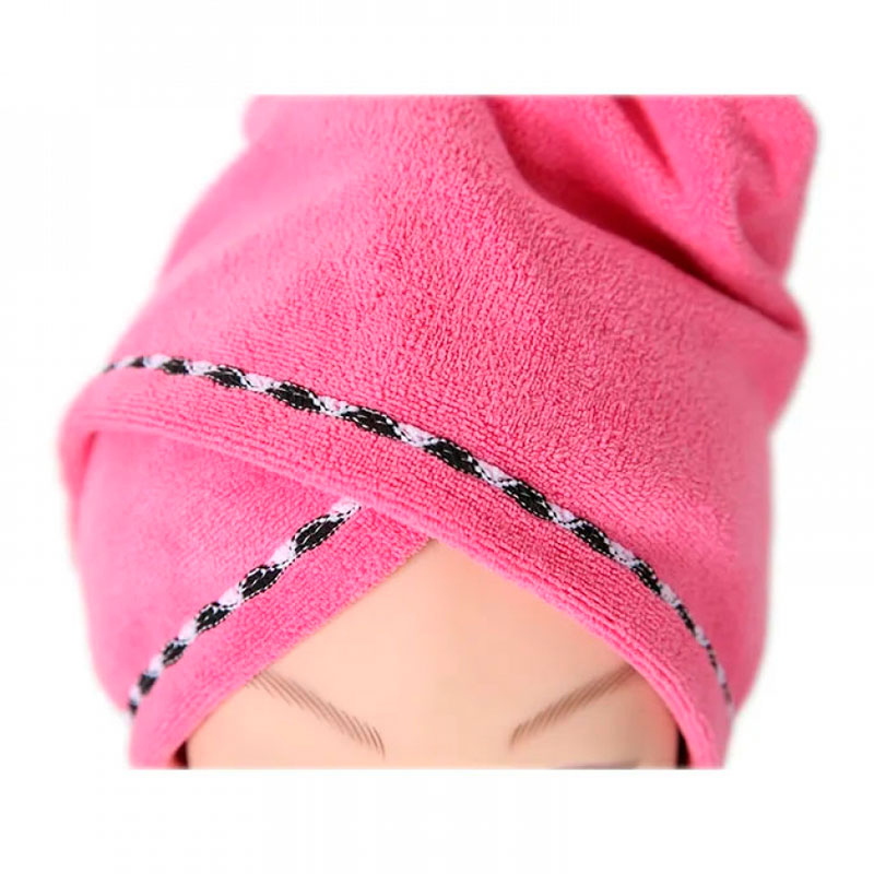 Рушник-тюрбан (чалма) для сушіння волосся з пухнастої мікрофібри (D-2), 62x25 см рожевий