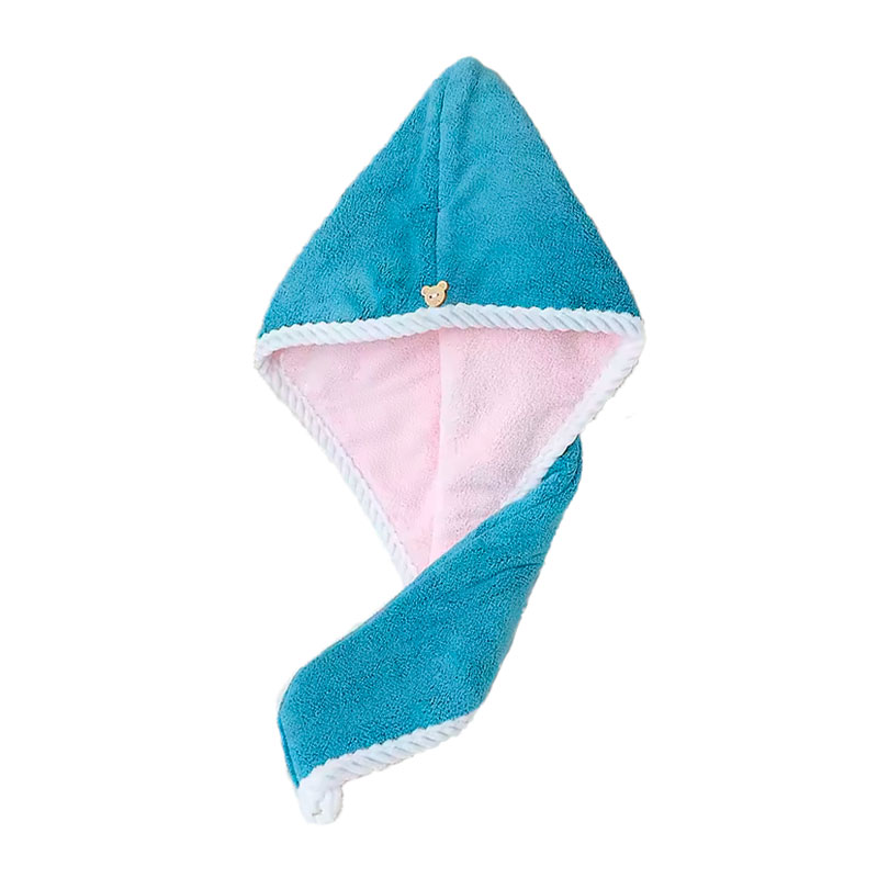 Рушник-тюрбан для сушіння волосся двосторонній флісовий з мікрофібри D4 62x25 см блакитно-рожевий