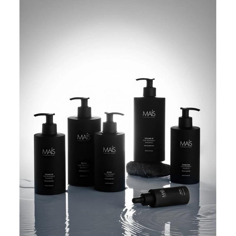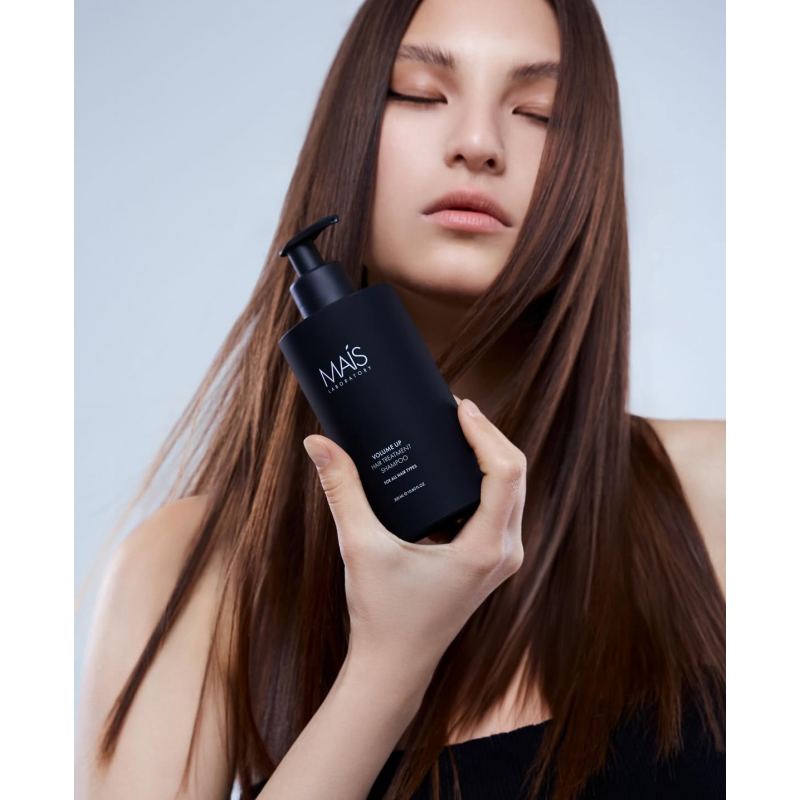 Mais Volume UP Hair Treatment Shampoo робить волосся візуально густішим і легшим, знижує сплутування біля коренів, покращує текстуру та тримає укладку свіжою довше. У разі регулярного використання пасма стають пружнішими та слухнянішими, зачіска має об'ємний і доглянутий вигляд без відчуття жирності або сухості.
