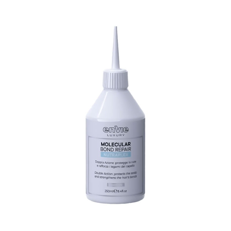 Envie Molecular Bond Repair Nutraplex – защитная добавка к процедурам окрашивания или химическому воздействию. Это профессиональное средство, разработанное на основе инновационной формулы Nutra-Plex, обеспечивает полноценный уход за волосами и кожей головы во время агрессивных процедур: окрашивания, кератинового выпрямления, нанопластики, химической завивки и т.д.