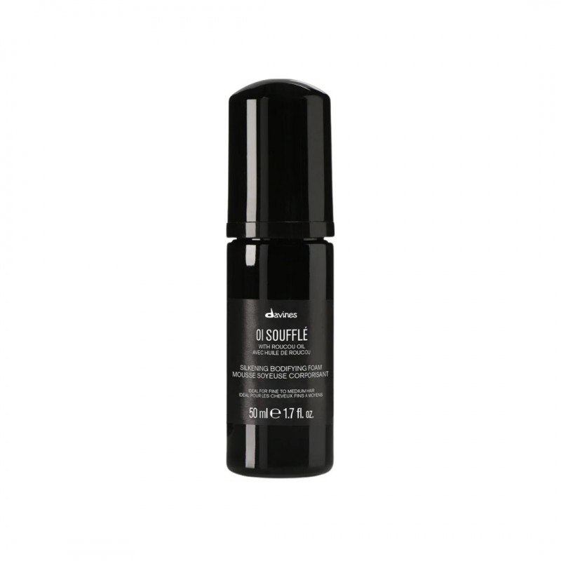 Davines OI Souffle — легка стайлінгова суфле‑піна для надання об’єму, шовковистості та контролю пухнастості; підходить усім типам волосся, зокрема тонкому й пофарбованому, підкреслює природну текстуру без склеювання й обтяження.