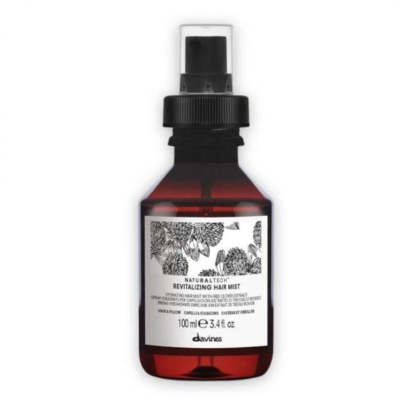 Davines Naturaltech Revitalizing Hair Mist — легкий незмивний спрей-міст для щоденного зволоження та пом'якшення волосся; освіжає довжину, допомагає знизити сухість і робить волосся слухнянішим, підходить усім типам, зокрема тонким і пофарбованим.