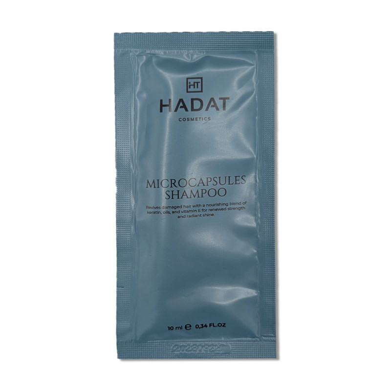 Hadat Microcapsules Shampoo — пом'якшувальний і відновлювальний шампунь з інноваційною технологією мікрокапсул для пошкодженого, сухого та ламкого волосся; мікрокапсули вивільняють активні компоненти під час миття, проникаючи в структуру для глибокого живлення та розгладження кутикули, підходить для всіх типів, включно з пофарбованими та після хімічного впливу, забезпечує блиск, еластичність і захист від зовнішніх чинників без сульфатів і парабенів.