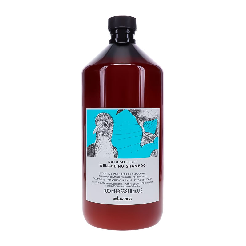 Natural Tech Well-Being Shampoo від Davines (країна-виробник – Італія) – шампунь для зволоження та пом'якшення волосся. Формула продукту збагачена екстрактом ехiнацеї, який зміцнює структуру локонів, повертає їм еластичність. Ефірні олії у складі зміцнюють корені, пришвидшуючи зростання здорових локонів.